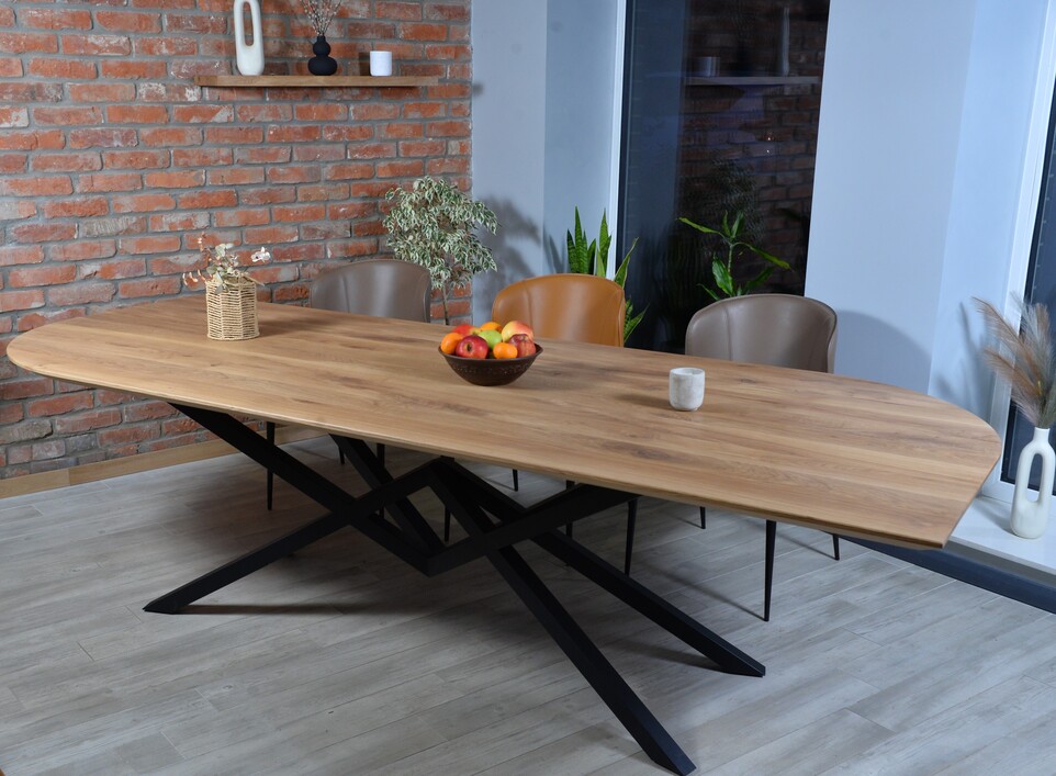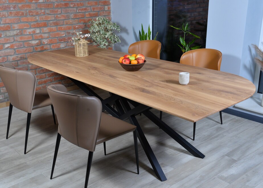 The oak tabletop combines natural beauty, strength, and durability. Its rich, warm tone and pronounced texture add coziness and elegance to any interior.