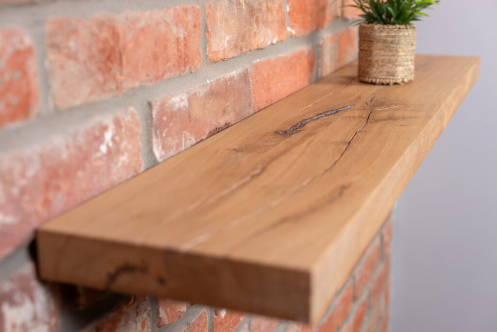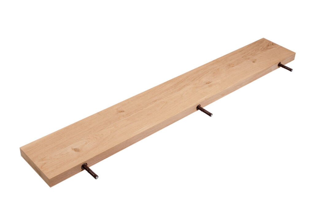 The oak wall shelf is made from carefully selected solid oak, providing high strength, durability, and a natural aesthetic. Neatly crafted notches for hidden brackets ensure a secure and visually clean installation.