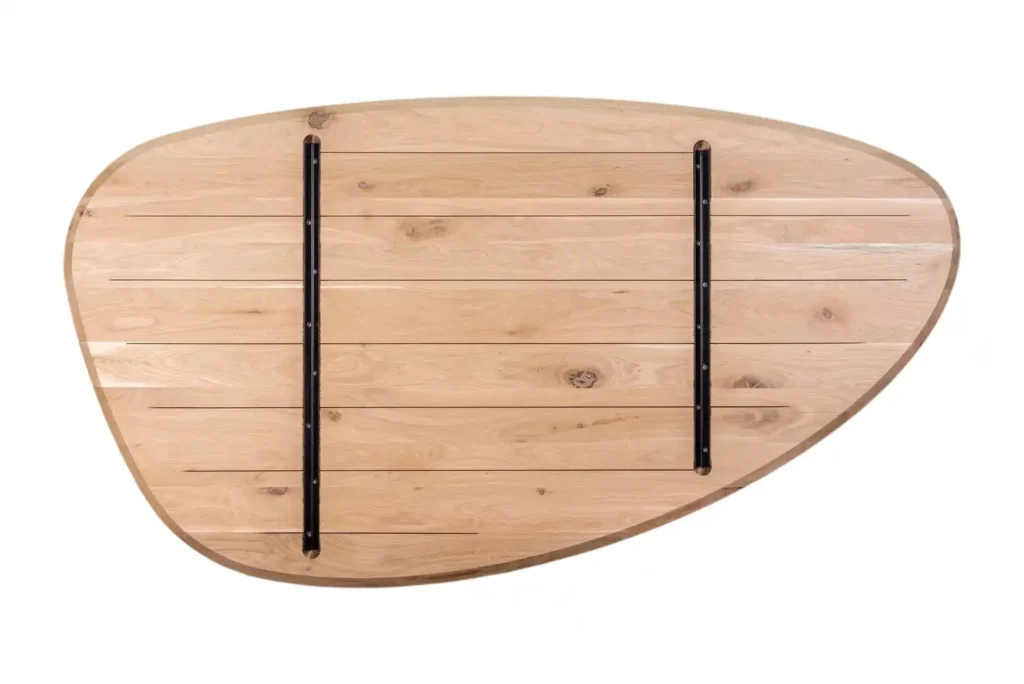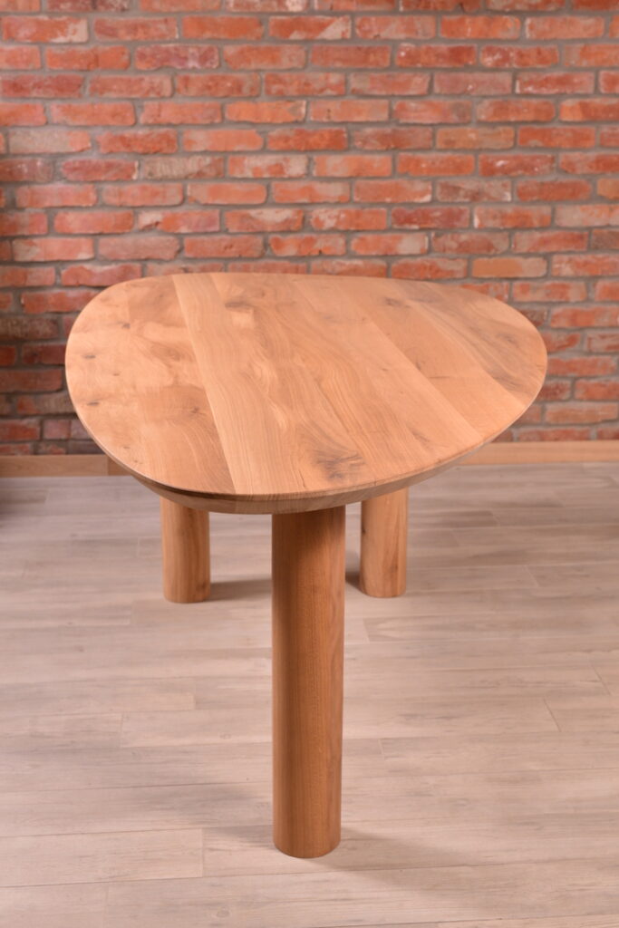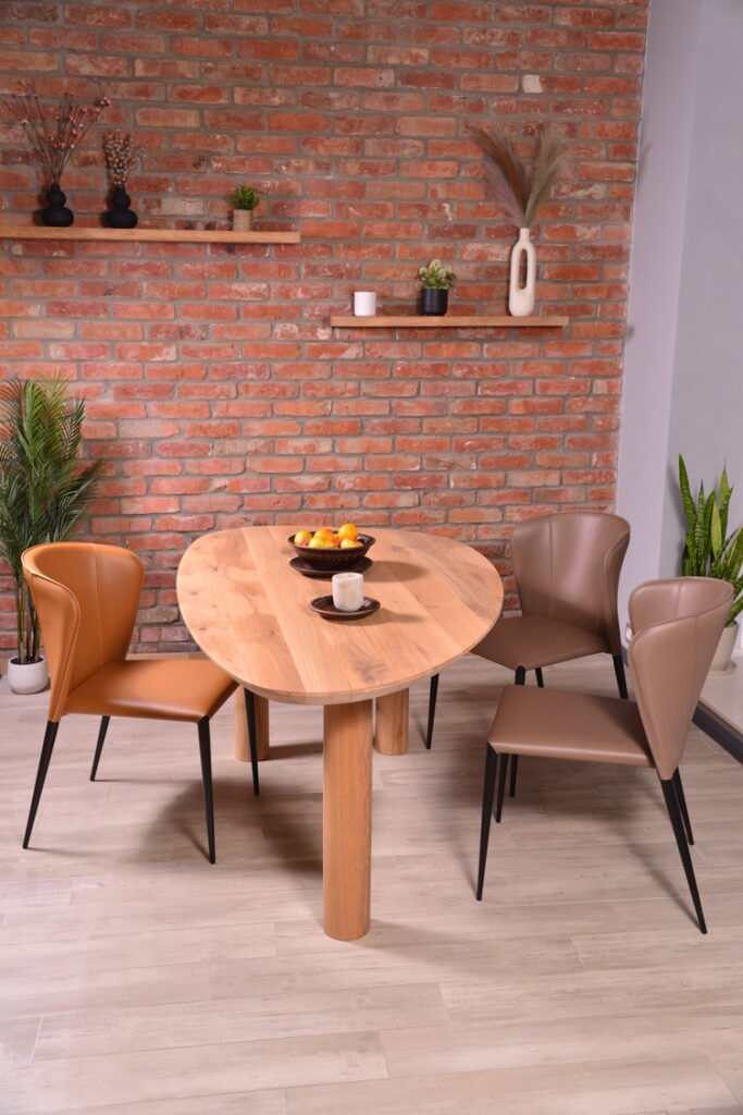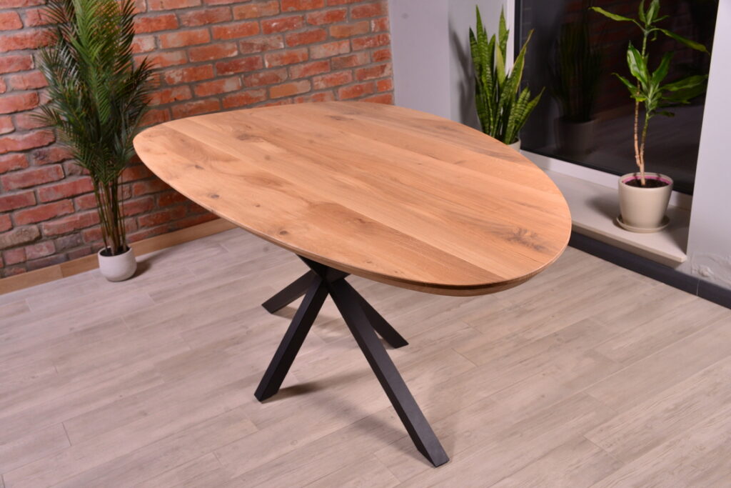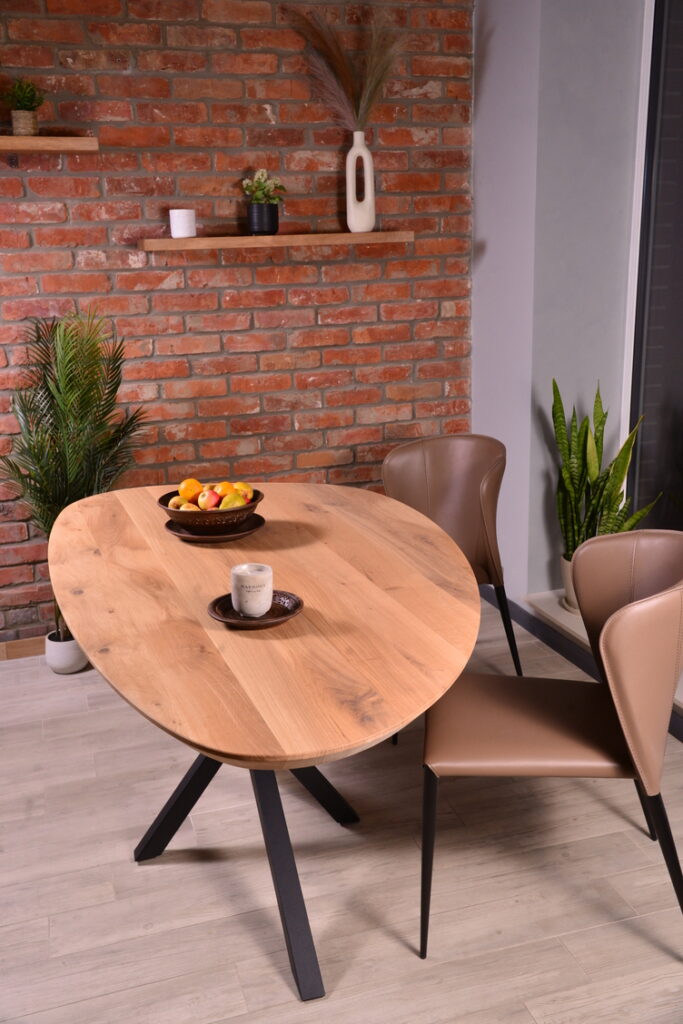 The oak tabletop combines natural beauty, strength, and durability. Its rich, warm tone and pronounced texture add coziness and elegance to any interior.