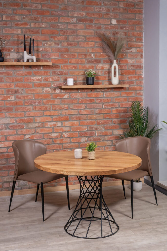 The oak tabletop combines natural beauty, strength, and durability. Its rich, warm tone and pronounced texture add coziness and elegance to any interior.