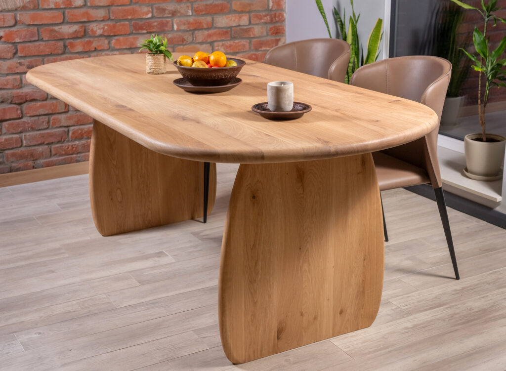 The oak tabletop combines natural beauty, strength, and durability. Its rich, warm tone and pronounced texture add coziness and elegance to any interior.
